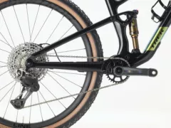 Build kits split between the carbon OCLV Mountain frame (top trims) and Alpha Platinum aluminum (the cheapest complete, the Top Fuel 8). Most short-travel competitors are carbon-only, and the aluminum option is part of why Trek can hit the price floor it does. Pinkbike's reviewer called the carbon 9.9 XTR Di2 the value play of the carbon range. The top trim is the RSL with electronic Flight Attendant suspension, which is unusual for short-travel bikes. Most don't bother with active electronic suspension because they're already efficient enough. Trek added it because they had a frame versatile enough to make use of it.